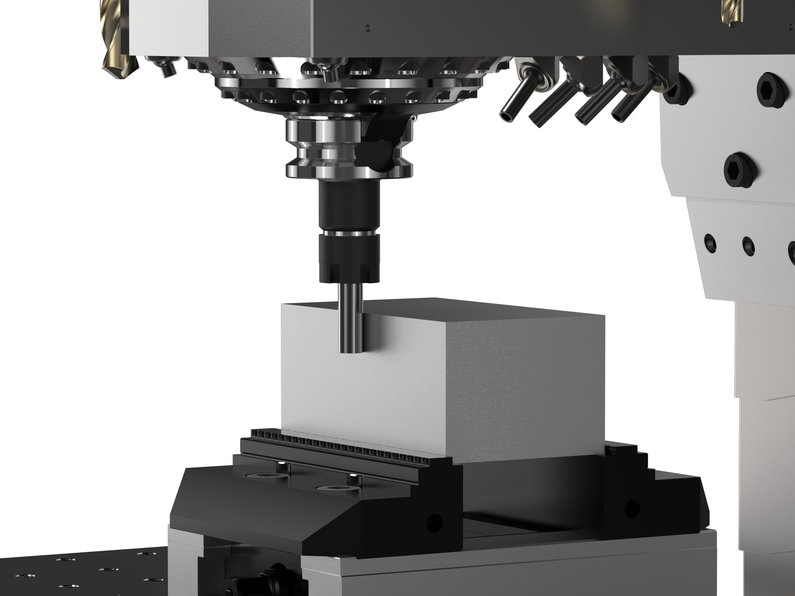 Samurai Steel™ is the patent pending technology that achieves the high rigidity of larger Cast Iron VMC's.